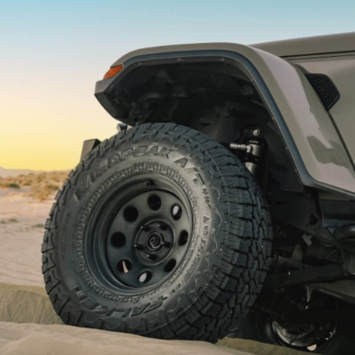 | Goodyear Wrangler AT Adventure | $$ | High quality. Beefy sidewalls. Bag well on sand. | Tear resistance when rock driving isn’t great. | Check price >> |