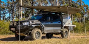 Worth noting here as well is that you can get awning walls too. This’ll allow you to turn the whole thing into a tent off the side of your four-wheel drive, whether that be for a bit of privacy, safety from the creepy crawlies in the Aussie bush, or if you just happen to be in Queensland where it’s beautiful one moment and hailing the next!