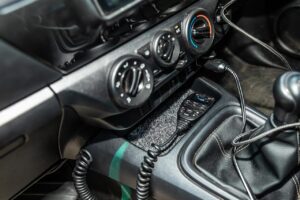 Mounting the handpiece mount to your dash is entirely on you. I’m not one to go drilling if I don’t need to for an install, and the HiLux has a great little spot under the air-con controls that I can pop the handset of the GME-XRS UHF. It’s out of the way and gets some good sound bounce under there for when I’m listening, and it remains easily accessible.