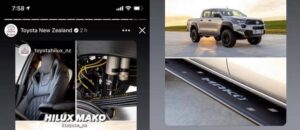 Surfacing on Toyota New Zealand’s social media (via its Facebook Story) this afternoon, is the brand’s newest model, the HiLux Mako. The new high-end HiLux, so far as we can see, includes upgraded bespoke leather-trimmed sports seats, Mako branded side steps (possibly rock sliders) and an ARB OME suspension kit with internal bypass BP-51 dampers.