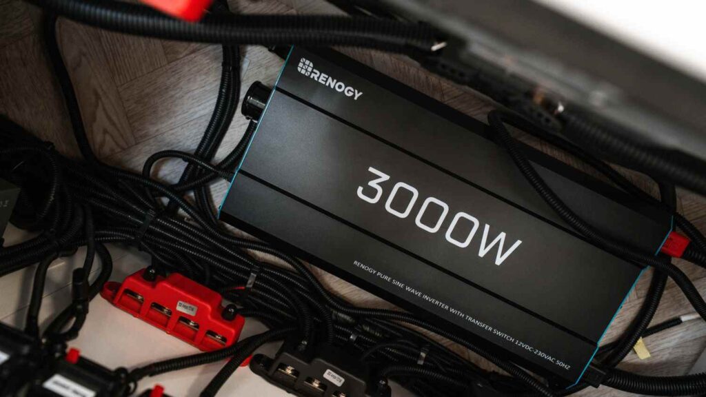 The system is built around a Renogy power management setup, including AC-DC and DC-DC charging and a battery management system designed to monitor everything from a single interface.