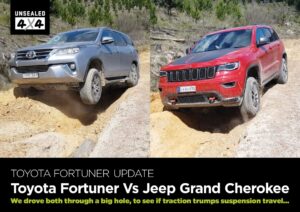 These two four-wheel drives are both insanely capable, but in very different ways. The Fortuner is simpler, more of a point-and-shoot style four-wheel drive, which is fun for someone experienced and straightforward for someone new to four-wheel driving. The Jeep is much more advanced – with multi-terrain modes and all sorts of electro-wizardry that tricks the vehicle into eating hard terrain for breakfast. But the suspension is so rigid it not only lifts wheels like a skirt in the breeze, it certainly isn’t the most comfortable vehicle to drive over corrugations (as it bottoms out on bigger impacts).